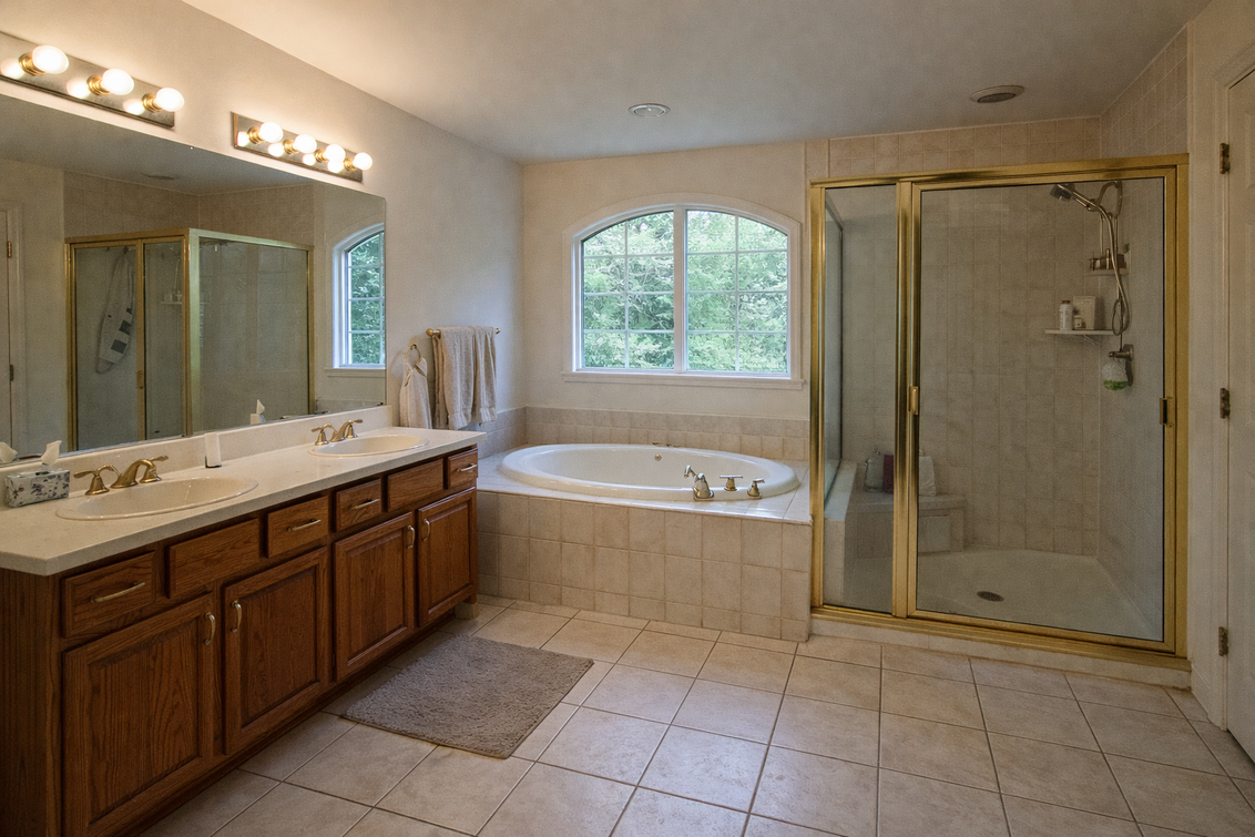 Our solution focused on a full refresh of the key features that define the experience of a master bath. We updated the plumbing fixtures with new Kohler fixtures, added a modern glass shower enclosure, and installed fresh tile in the shower for a crisp, updated look. A new freestanding bathtub became a focal point, and the new sink cabinets with a composite stone countertop brought both durability and a polished finish to the vanity area.